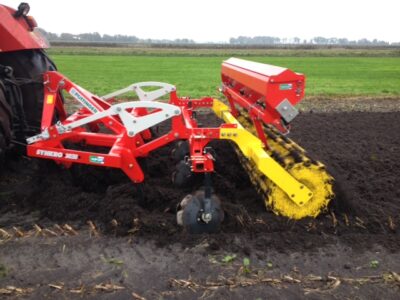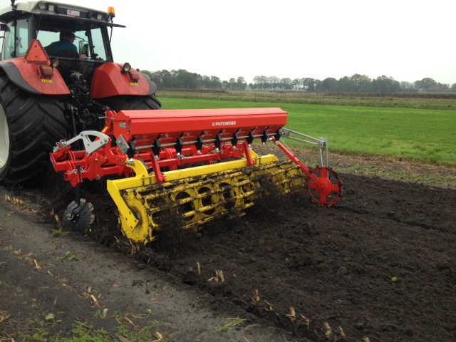 In het najaar is de machine voorzien van een zaaibak.