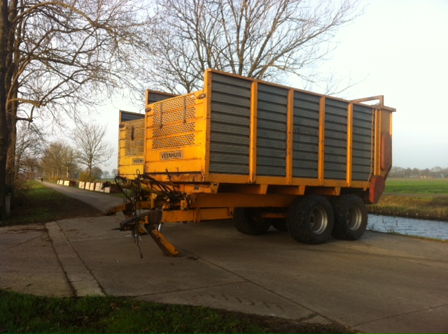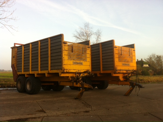 Veenhuis Silagewagens Veenhuis silagewagen (2 stuks) 14 ton wagen.TandemstelHydraulische remDubbel walsen achterin. Verhuurtarief: 20,= p/uur